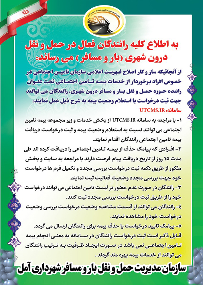 با اصلاح فهرست اعلامی سازمان تامین اجتماعی درخصوص افراد برخوردار از خدمات بیمه تامین اجتماعی تحت عنوان راننده حوزه حمل و نقل بار و مسافر درون شهری، رانندگان فعال و یا دارای پروانه فعالیت میتوانند از طریق روشهای مذکور در اطلاعیه زیر، در این سامانه ثبت نام نمایند