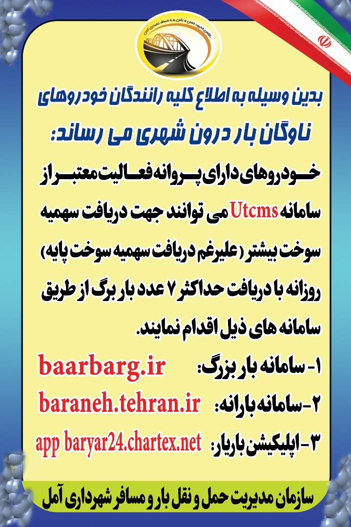 خودروهای باری درون شهری که دارای پروانه فعالیت معتبر هستند جهت دریافت سهمیه سوخت بیشتر از سوخت پایه میتوانند با دریافت باربرگ از