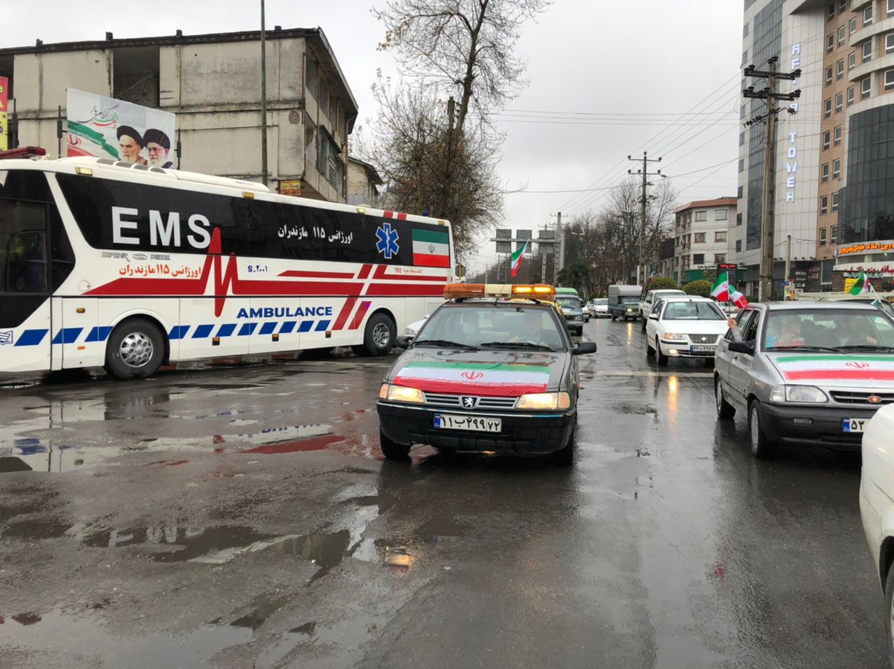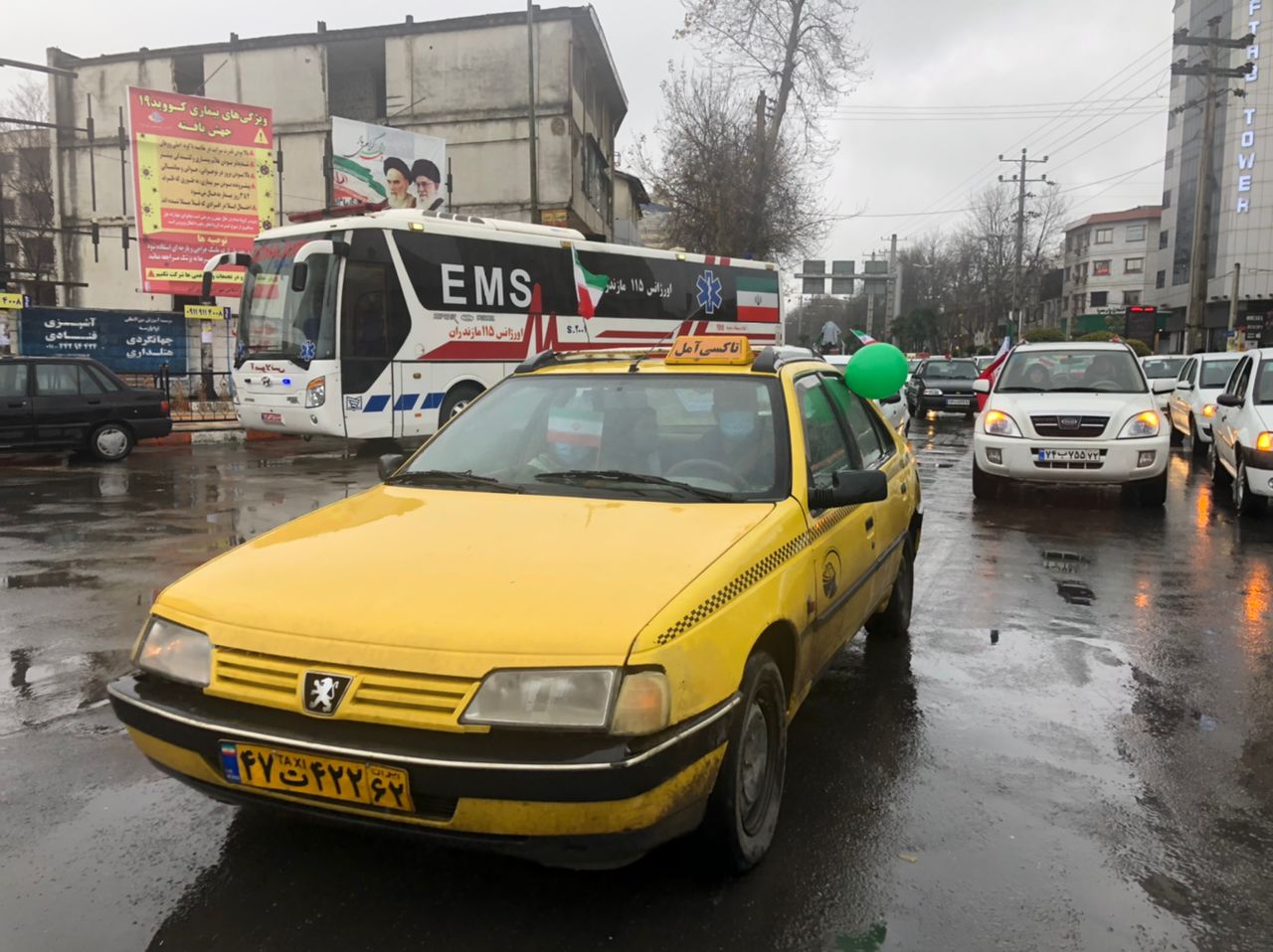 رژه خودرویی تاکسیرانان آملی بمناسبت 22بهمن