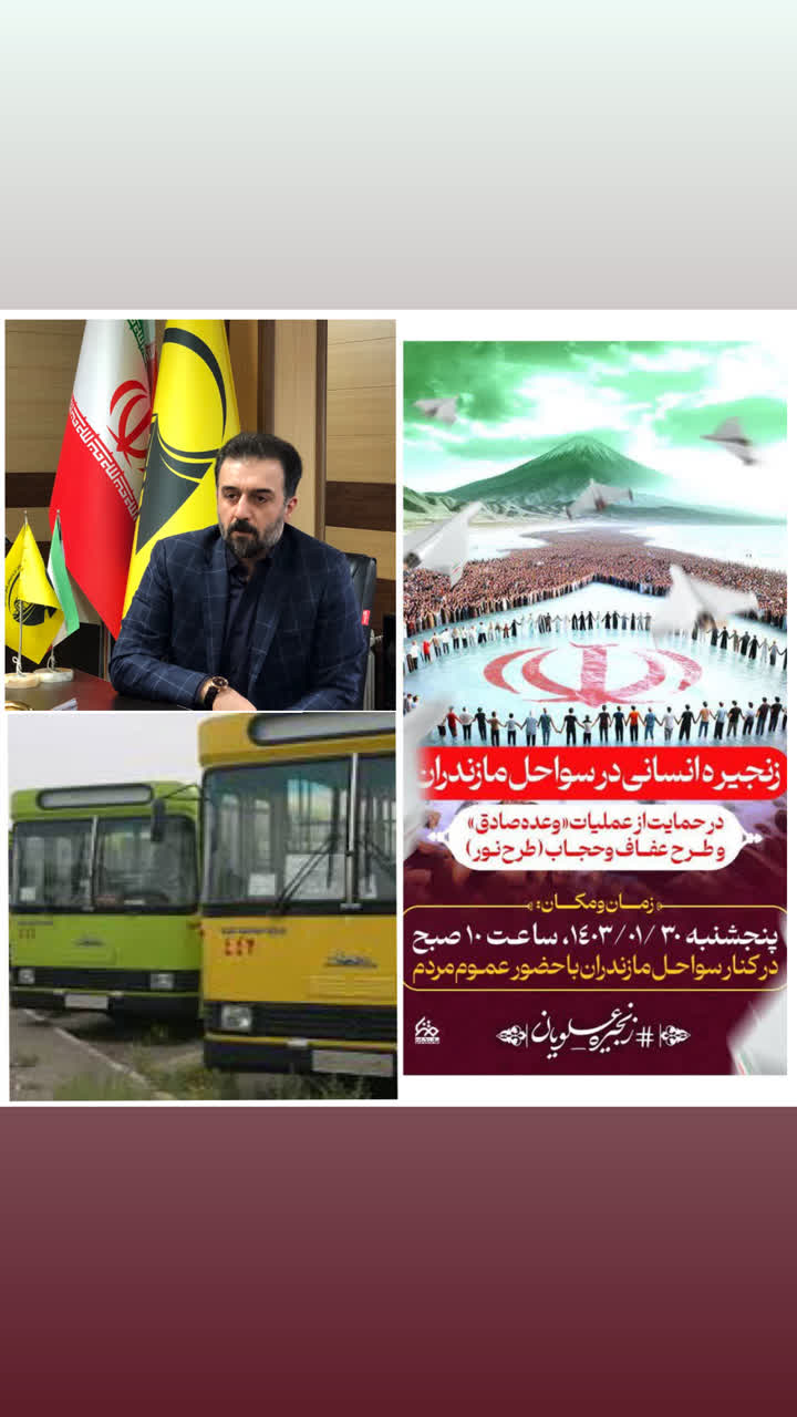همراهی و پشتیبانی سازمان حمل و نقل شهرداری آمل از تشکیل زنجیره انسانی حمایت از عملیات وعده صادق، امروز در سواحل مازندران